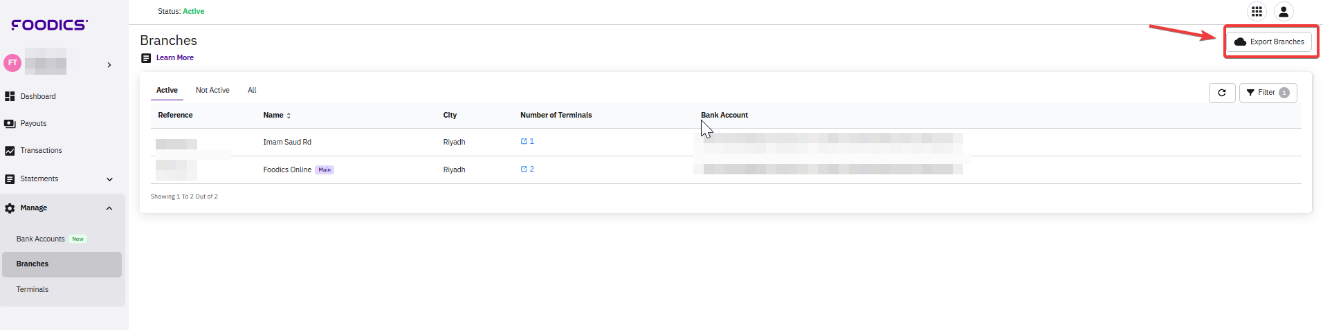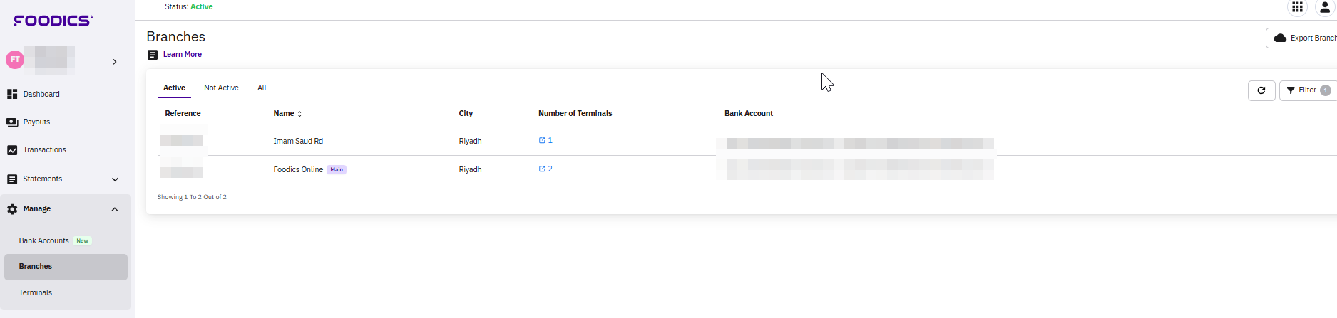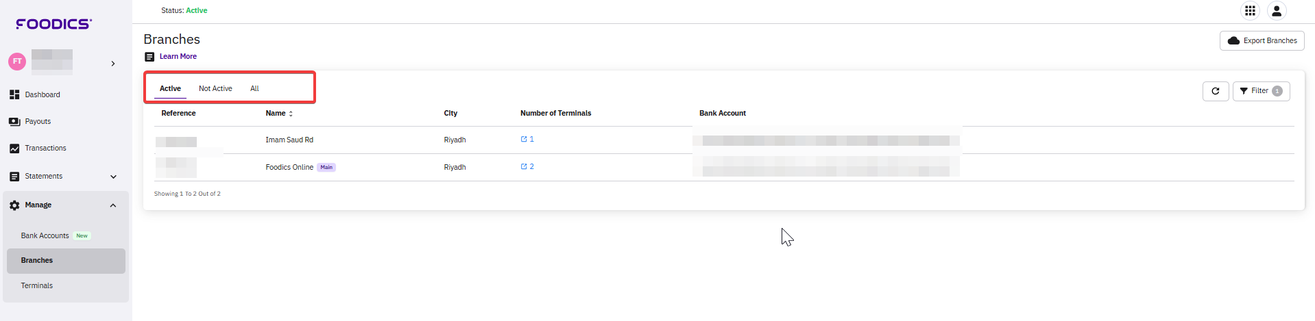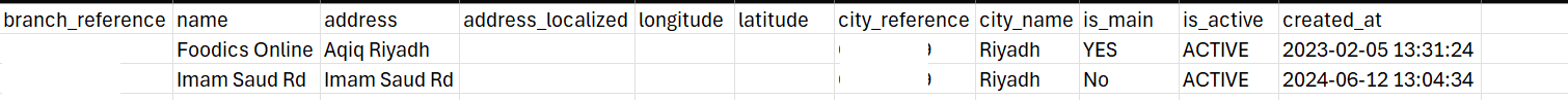 - Is_active: Indicates whether the branch is activated in your account or not.