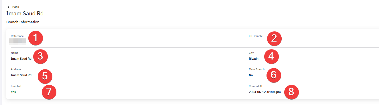 - Reference: Unique and randomly generated reference numbers for each branch you have currently.