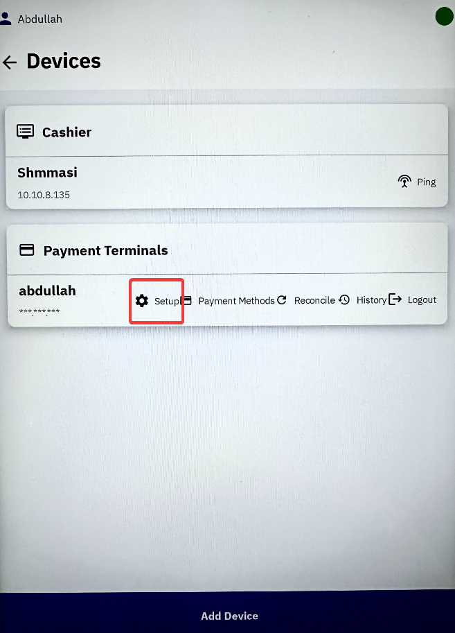 5. Click on Add Device then Add Payment Terminal